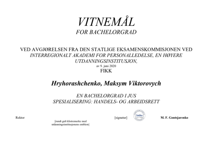 I graduated from the Interregional Academy of Personnel Management with a degree in Law. My studies provided me with a strong theoretical foundation and practical skills in jurisprudence, including legal analysis, interpretation, and application of legislation. This experience sharpened my critical thinking, attention to detail, and ability to construct well-reasoned arguments.